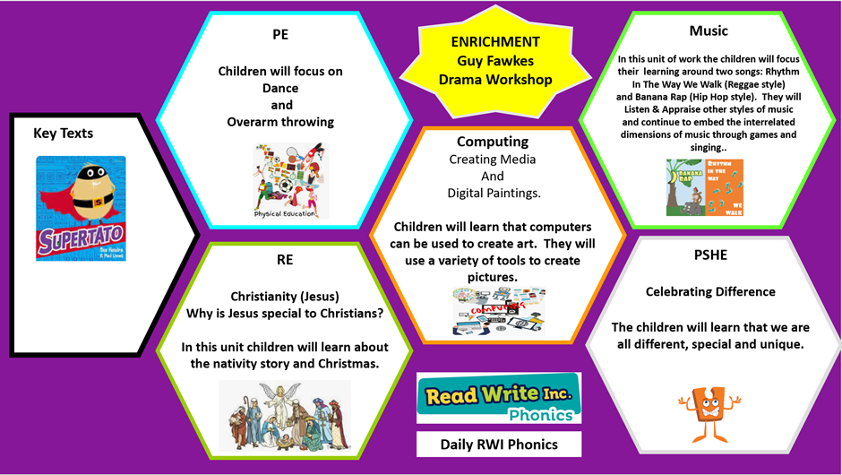 In English, we use a narrative to help us with our learning. We will be using the story 'Supertato' to support our learning. The children will be exploring and innovating a narrative to create their own version of a known story. Our non-fiction focus for this half-term will be creating an information text about mice.