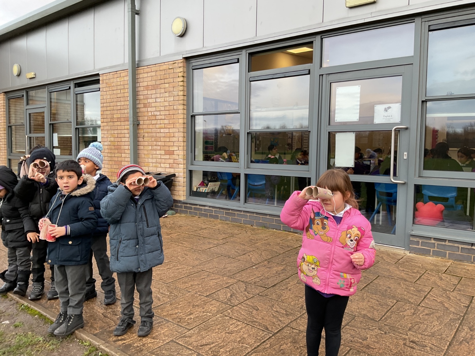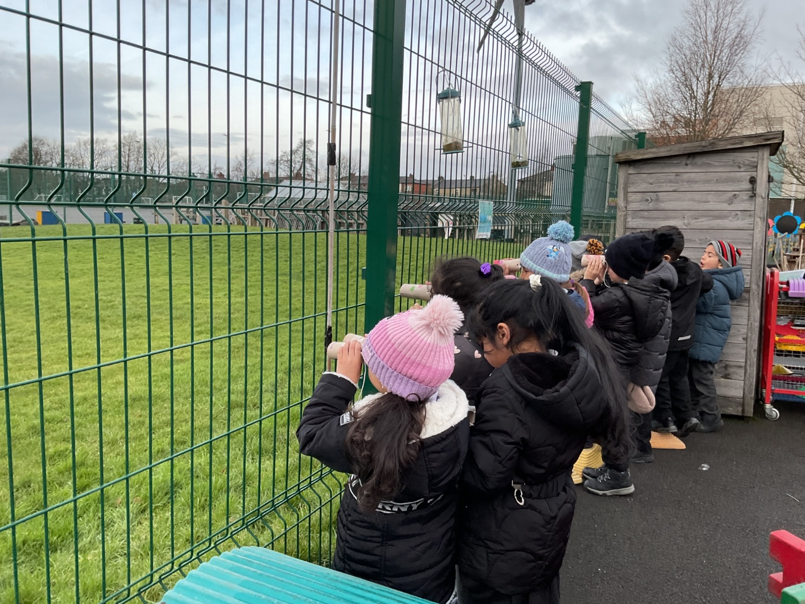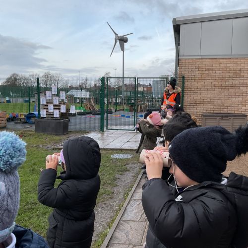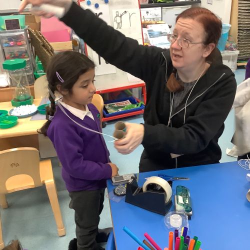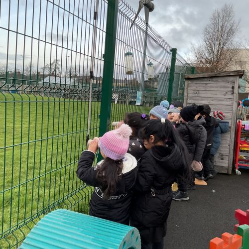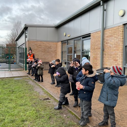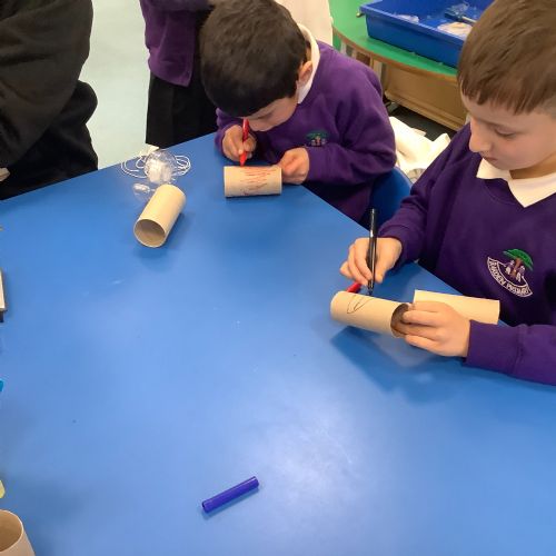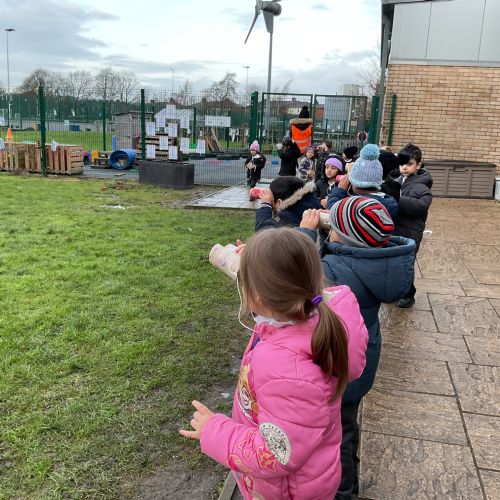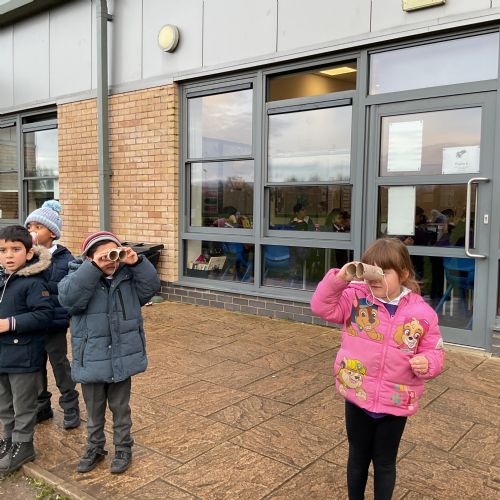 Creating binoculars with Mrs Nolan, then using the binoculars to go bird spotting.