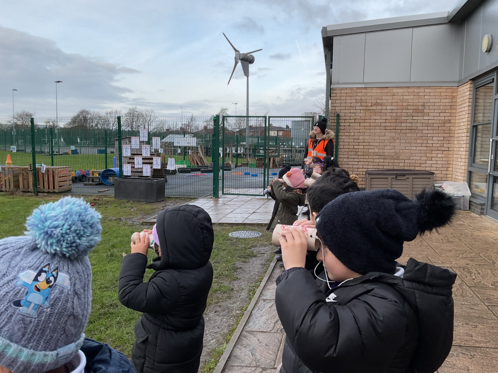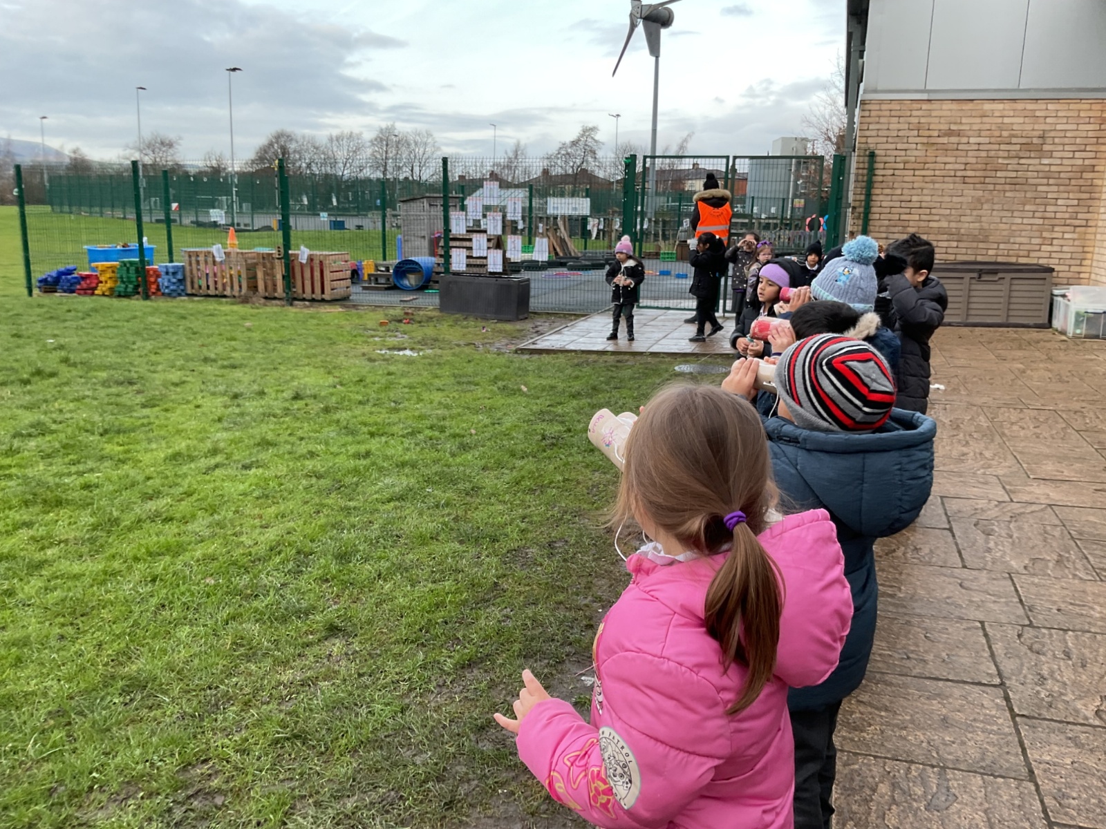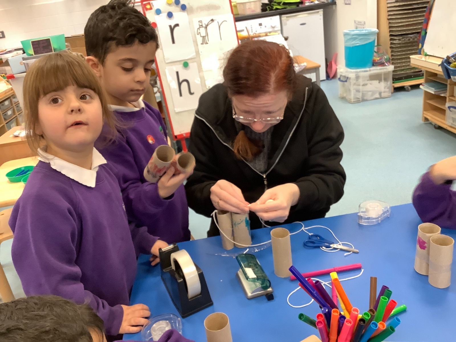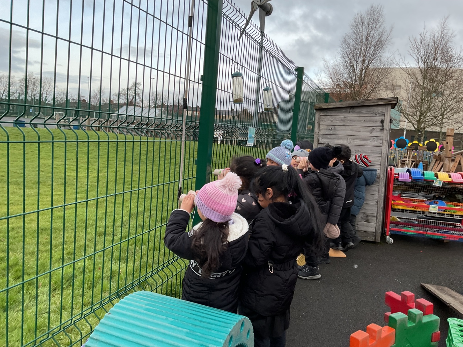 Creating binoculars with Mrs Nolan, then using the binoculars to go bird spotting.