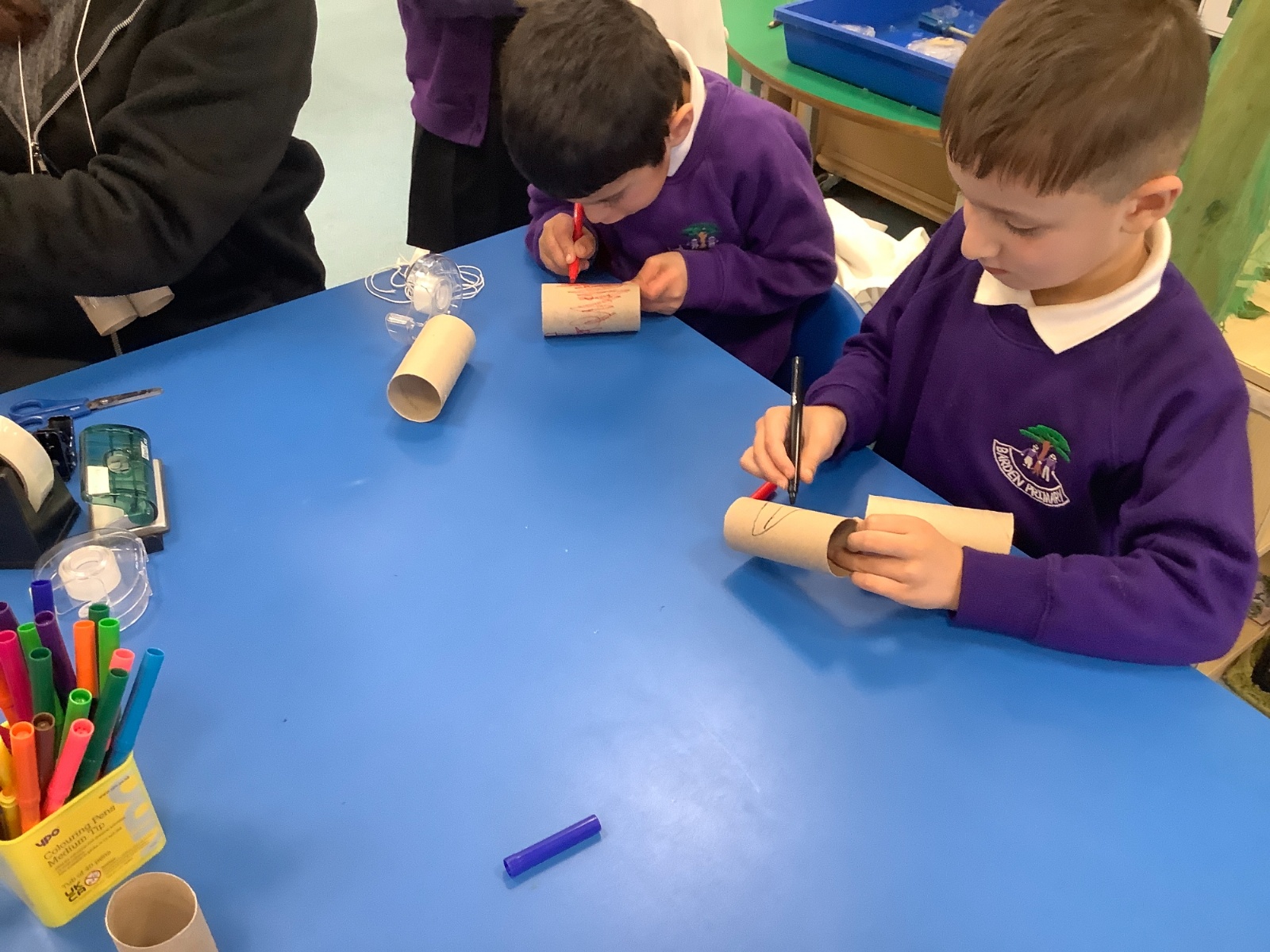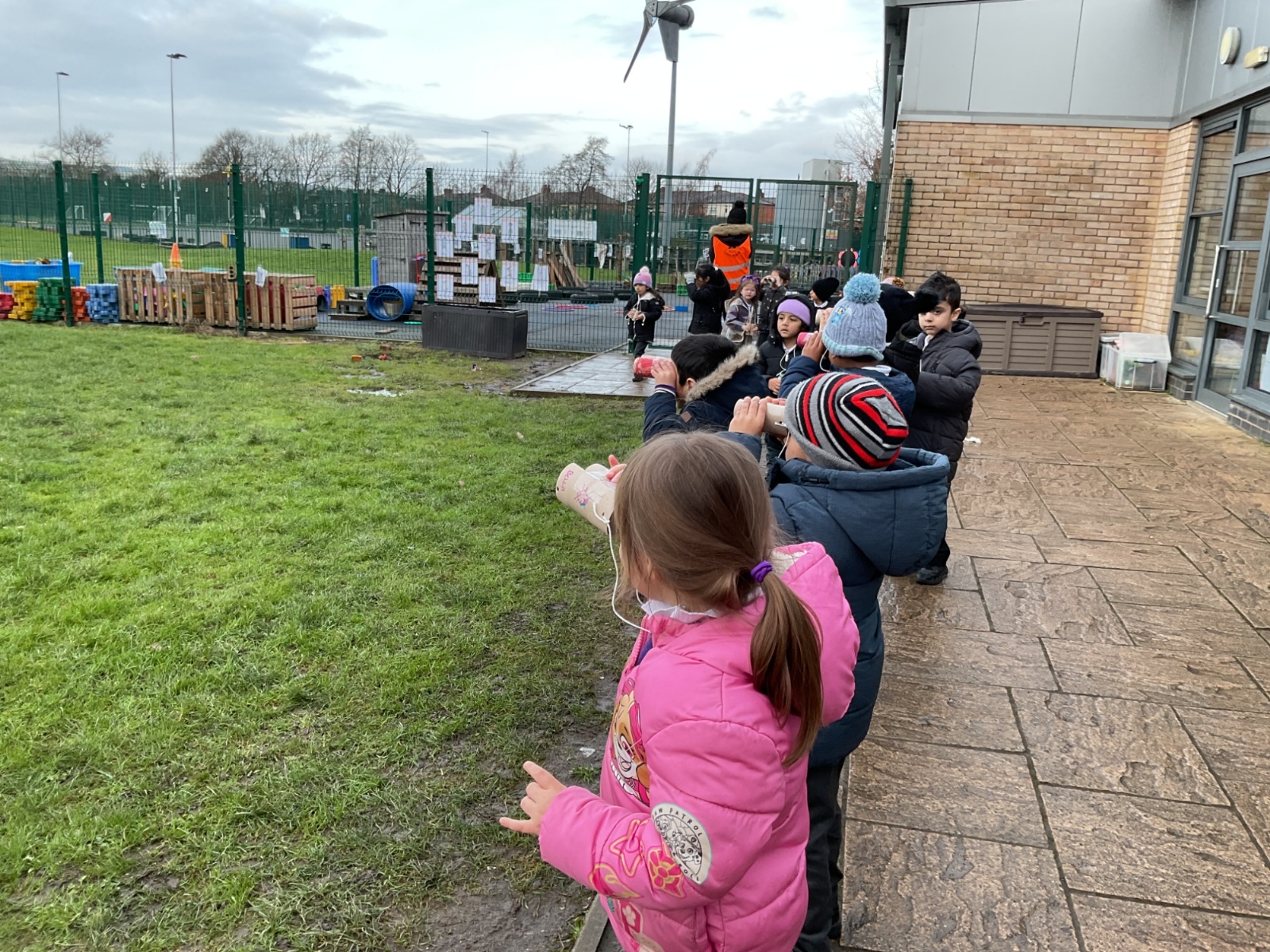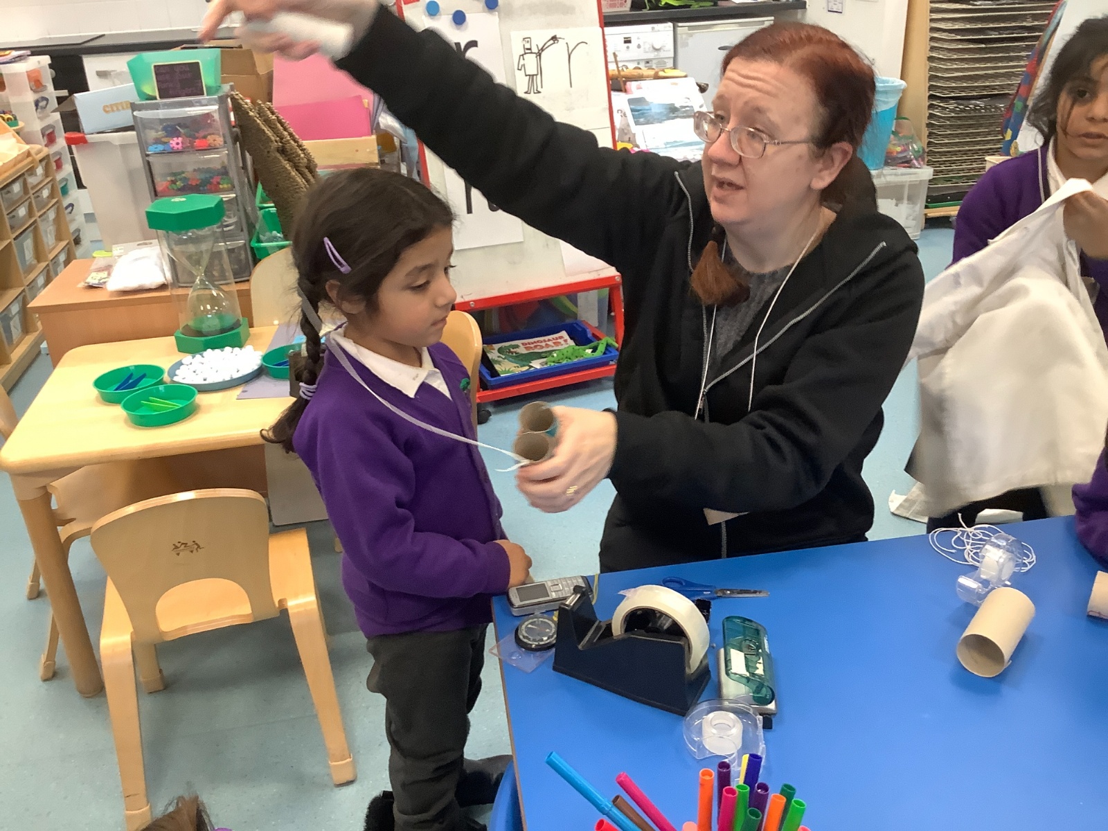 Creating binoculars with Mrs Nolan, then using the binoculars to go bird spotting.