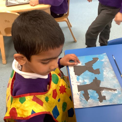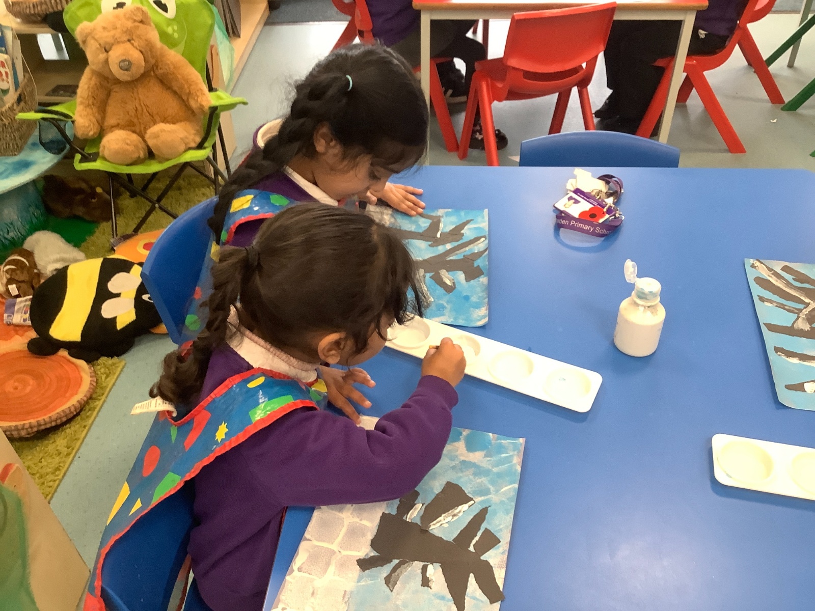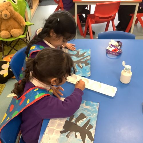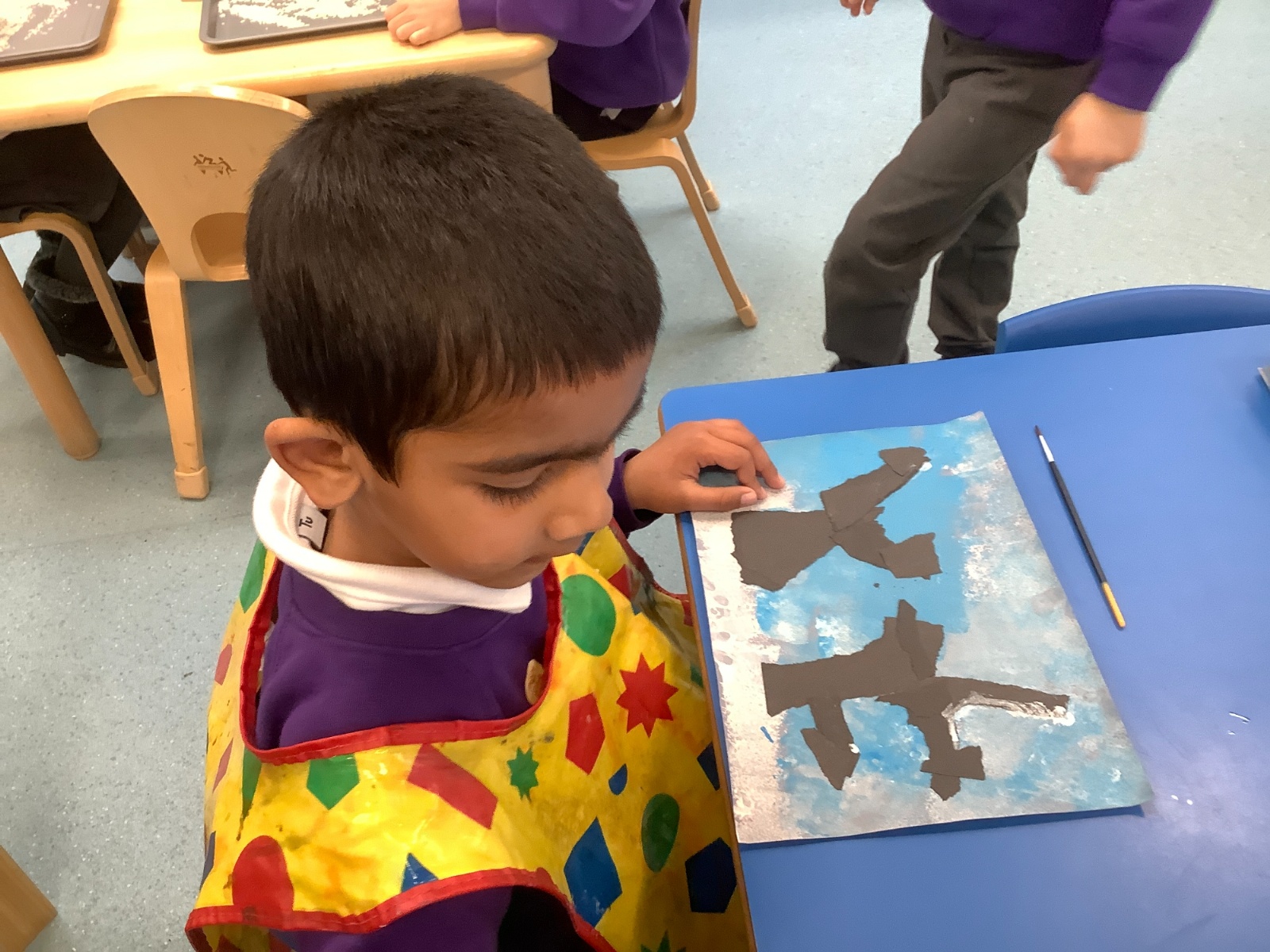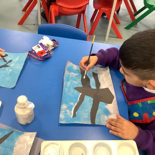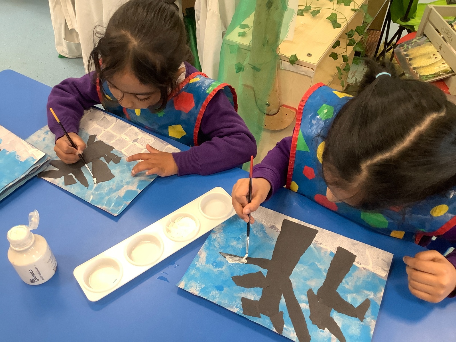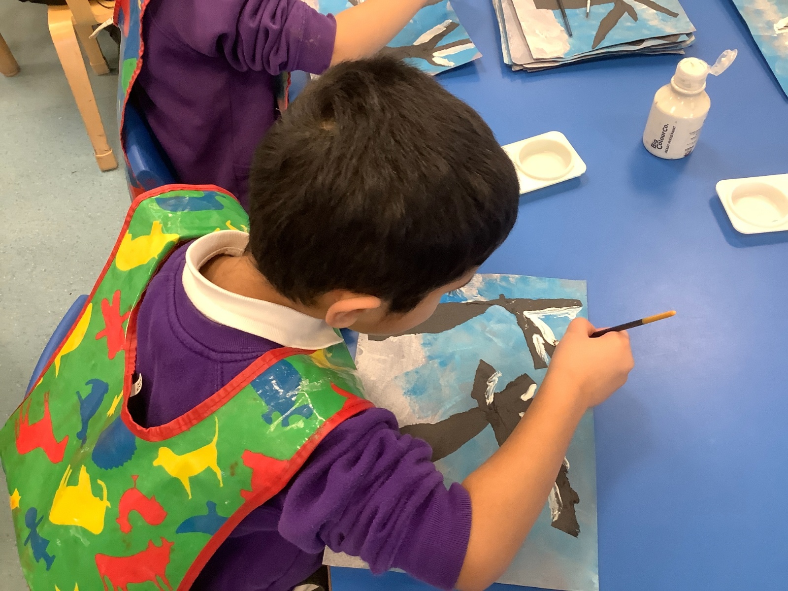 Winter Paintings - We used a thin paintbrush to paint snow on the trees.