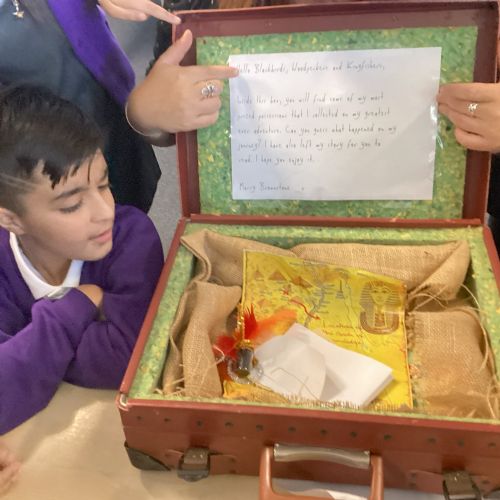 Year 4 were sent a very special delivery. Inside, we found a treasure map of Ancient Egypt, a letter from a girl called Marcy Brownstone, Ra's moon eye, snake venom and dust from the Sphinx. We were also given a book of Marcy's adventures called: Marcy and the Riddle of Sphinx. We can't wait to get reading!