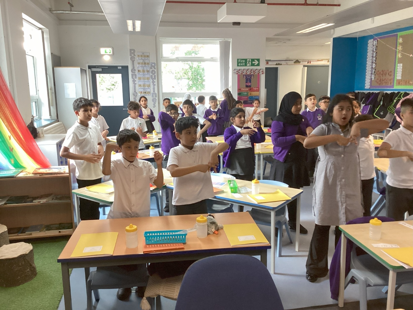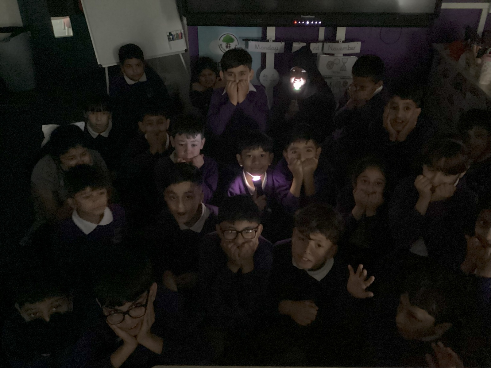 To start our new writing unit on The Dark, we turned off all the lights and thought about why people might be afraid of the dark. After reading the story, we used talk for writing actions to retell it.