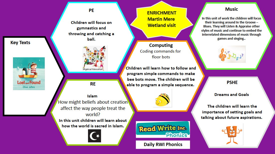 PE days are Monday Afternoon and Wednesday Morning every week. The children need to make sure they have their PE Kit in school every day. For this half-term, the children will be developing their skills in learning how to throw a ball overarm accurately, and we will also look at some dance.