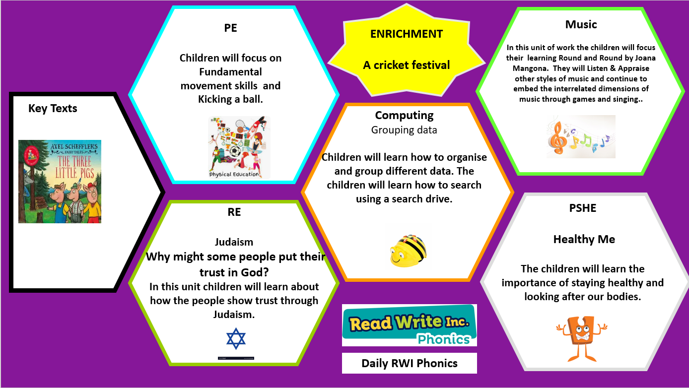 PE is on a Tuesday morning and a Wednesday afternoon every week.  The children need to make sure they have their PE Kit in school every day. For this half-term, the children will be developing the fundamental movement skill of overarm throwing, developing and applying the skill in different situations.