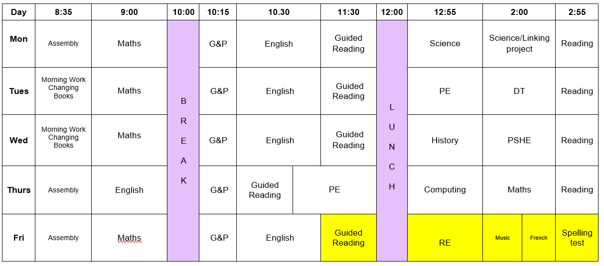Our PE days are Tuesday and Thursday. Please make sure you have your full PE kit on these days.